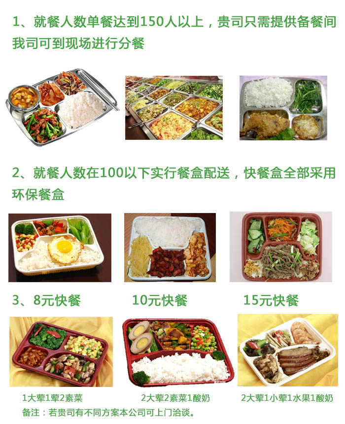 主營業(yè)務:企業(yè)食堂承包運營管理,現(xiàn)場配餐,打包快餐,蔬菜凈菜配送,副食品批發(fā)等