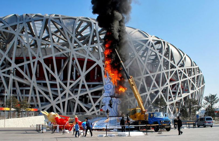 奧運會鳥巢“祥云玉兔”起火
