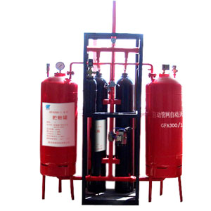 自動管網超細干粉滅火系統適用于較大保護空間全淹沒滅火及局部保護應用撲救較大面積的火災。該滅火系統的原理是:利用氮氣瓶組內的高壓氣體,經減壓進入滅火劑儲罐,推動滅火劑經輸粉管到設置在保護區的噴嘴高速噴出,迅速滅火。
