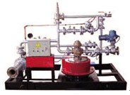 主要由常壓泡沫液儲罐、平衡閥、泄壓/持壓閥、安全閥、泡沫比例混合器、泡沫液泵、 控制系統、雙針壓力表、水輪機、公共底座及管道附件等成。