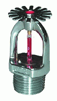 快速響應(yīng)下垂型噴頭是由噴頭框架、溫感元件、密封件、濺水盤等組成,其中噴頭框架是采用銅合金材質(zhì)的精密鍛壓、外表層進行鍍鉻拋光的制造工藝,使其具有框架強度高、耐腐蝕性強、外觀精美的特點。溫感元件(玻璃球)具有動作可靠,反應(yīng)速度快。密封件具有抗老化、耐腐蝕、密封性好的性能特點。快速響應(yīng)下垂型噴頭向下噴灑的水量為80%~100%。玻璃球的直徑為3mm[RTI≤50(m·s)0.5]。依據(jù)玻璃球動作的溫度不同而分為多種溫級噴