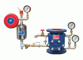 濕式報警閥主要結構原理為隔板座圈型濕式報警閥。閥體材料為灰口鑄鐵,閥瓣、座圈采用銅合金材料,銷軸及內部螺釘等采用不銹鋼材料,密封墊片采用丁腈橡膠。閥瓣連接部位采用了圓弧連接,使得閥瓣啟閉靈活,定位性好。依據功能要求設有進水口、報警口、測試口、出水口。我公司生產的ZSFZ濕式報警閥DN150為內平衡式,DN100、DN200為外平衡式,其結構如圖1,圖2,其高度尺寸列于表一。